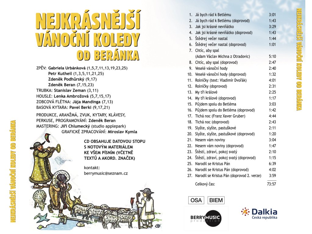 2CD výukové: Nejkrásnější KOLEDY a LIDOVKY od Beránka (mp3+KARAOKE+zpěvník) / EDU Premium 30+ licence